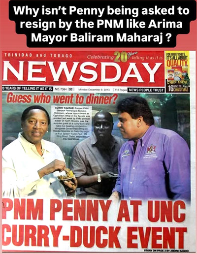 Penny, who was Arima MP at the time, attended a curry duck lime hosted by Oropouche East MP, Dr Roodal Moonilal, on December 7, 2013.